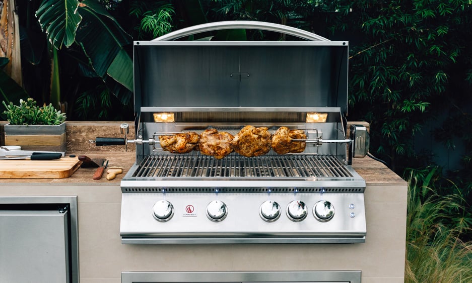 The all new Sizzler Pro 40″ packs tons of features on top of quality construction and affordability. Upholding the same sleek design as our classic Sizzler along with the added Exterior LED Lights, this grill really set itself apart. The interior has also been revamped with 14,000 BTU Cast Burners, Heat Zone Separators and Interior Cooking Lights to make for a premium grilling experience from top to bottom. The best part is… it won’t break your wallet.