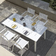 Impression's classic lines and timeless design combine maximum comfort and easy handling. With Batyline or Aluminum seats and backs, the Impression dining chairs are lightweight and stackable. Square and long tables provide seating for large or small groups of people in any outdoor setting.
